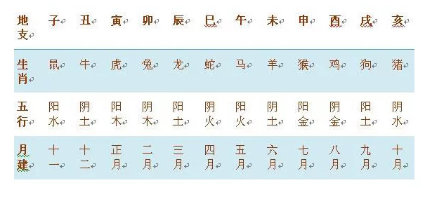 因为我国历史非常悠久,所以历法混乱,有周历、夏历和殷历同时并存。一直被我们沿用至今的是夏历,十二地支一般都以夏历的寅月(正月)作为一年的开始。这是月份和地支还有生肖与五行的对照表。如下图: